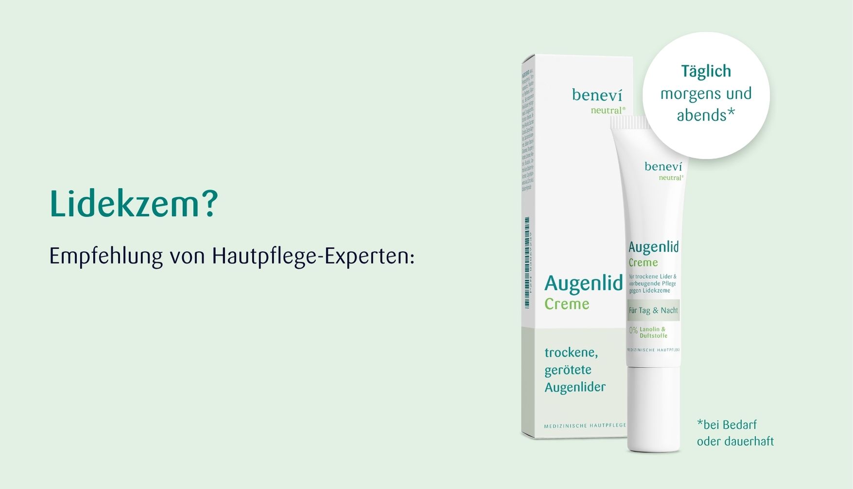 Hinweis: Eine entzündete Haut (Lidekzem) sollte von einem Arzt behandelt werden. Im akuten Entzündungsstadium kann eine pflegende Creme die Symptome zunächst verschlimmern.