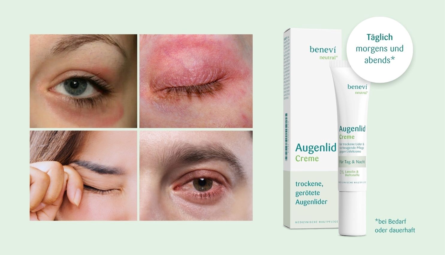 Trockene Haut: Trockene Haut um die Augenlider kann zu Rötungen und Reizungen führen. Empfehlung: Trockene Augenlider