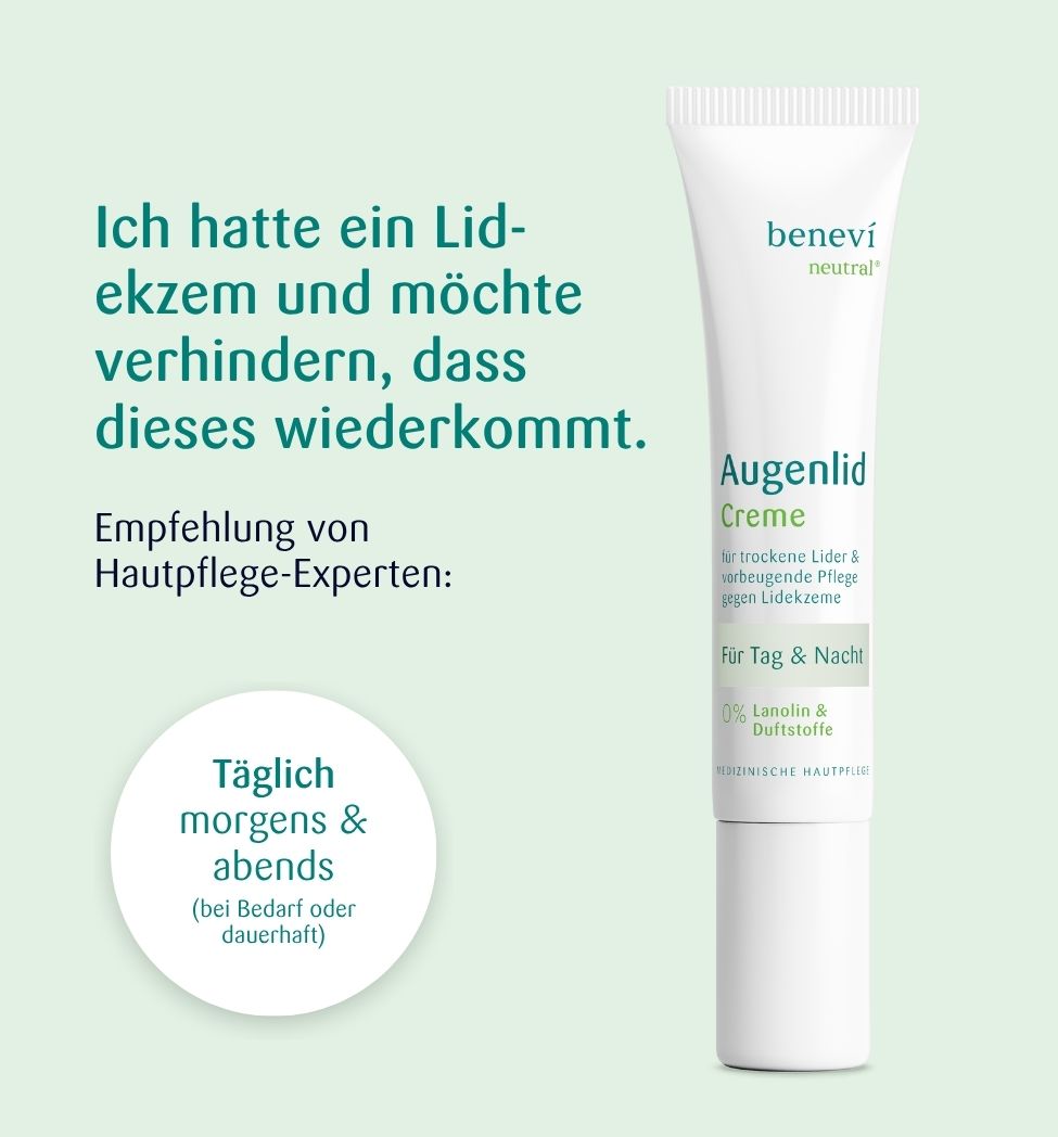 Sanfte Reinigung: Reinige deine Augenlider täglich mit einer milden, parfümfreien Reinigung, z. B. benevi neutral Gesichtsreinigung.
