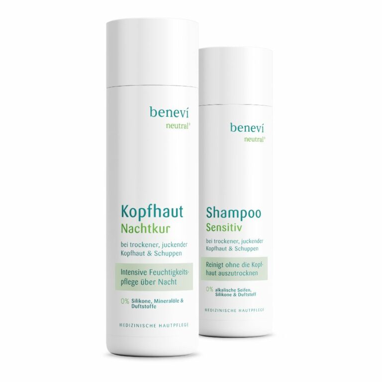 Das geht besonders gut mit Lotionen wie beispielsweise der benevi neutral KOPF-LOTION 50ml (mit Applikator für tagsüber) oder der benevi Kopfhaut-NACHTKUR 200ml (für eine langeinwirkende KUR über Nacht).