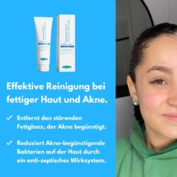 Normalerweise schreibe ich keine Bewertungen, aber: ich habe hormonell bedingte Erwachsenenakne mit diversen Allegien, die normale Akneprodukte vom Hautarzt für mich unbrauchbar machen.Dieses Waschgel zusammen mit dem Pflegefluid Plus hat nach Jahren(!) zum Teil verscshlimmmernder Behandlung durch den Hautarzt (Antibiotika, diverse Salben mit Kontaktexemen) endlich eine deutliche Besserung gebracht: zunächst wurde die Haut etwas trockener und schuppte sich, dann wurde das Hautbild von Tag zu Tag reiner und besser. Nun, nach nur 3 Wochen, heilen auch noch die letzten schwer entzündeten stellen ab, glätten sich, nur noch hier und da ein kleiner neuer Mitesser. Ich bin begeistert! Keine Allergien, kein Brennen! Allerdings muss man sich dafür an die Beschreibung halten: „sehr sparsam verwenden!“ sonst Trocknet die Haut stark aus!